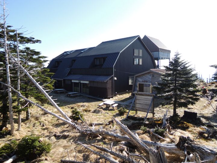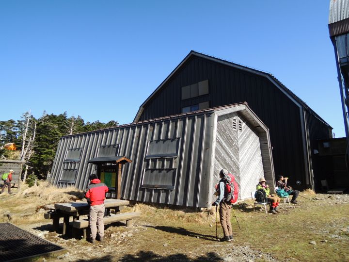 小屋の周りにベンチがいくつもあって、何組かのハイカーが休んでいた。