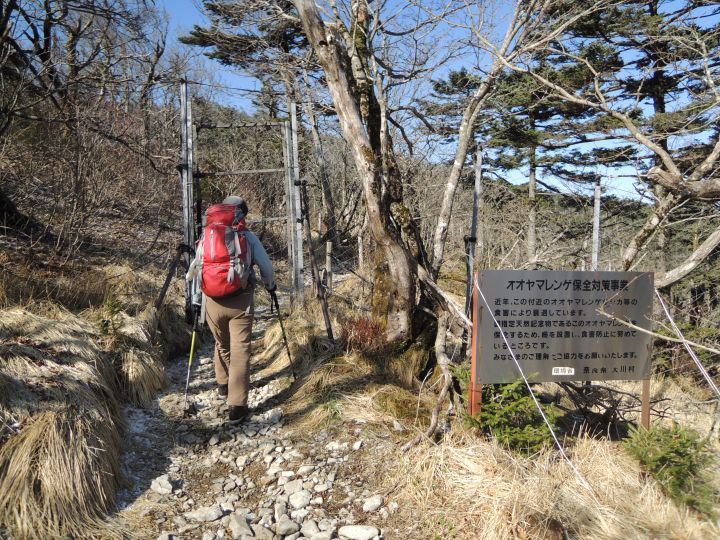 天然記念物のオオヤマレンゲ保護のため、シカ避けネットが張られていた。