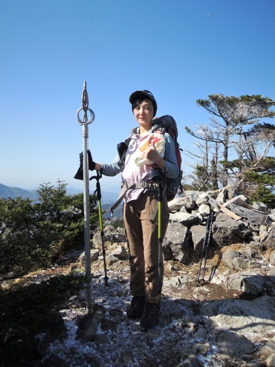 関西遠征2日目は2時過ぎに起床。駐車場が心配だったので2時半には車中泊した道の駅・吉野路黒滝を出た。狭い酷道をひた走り、4時前に行者還トンネル西口駐車場に無事到着。夜明け前に出発したので上りは比較的静かな山歩きを楽しめたが、朝のうちは強風が吹いており、手がかじかむほど体感温度は低かった。朝から雲ひとつない青空がひろがり、山頂は遠望がよくきいて綺麗な霧氷も見ることができた。同日に大台ヶ原も歩く予定でいたので、山頂でのんびりしている時間はなかったが、満足度はひじょうに高かった。さすがにGWだけあって、下りでは頻繁に登山者とすれ違い、どこに車を停めのだろうといぶかしく思うほどであった。