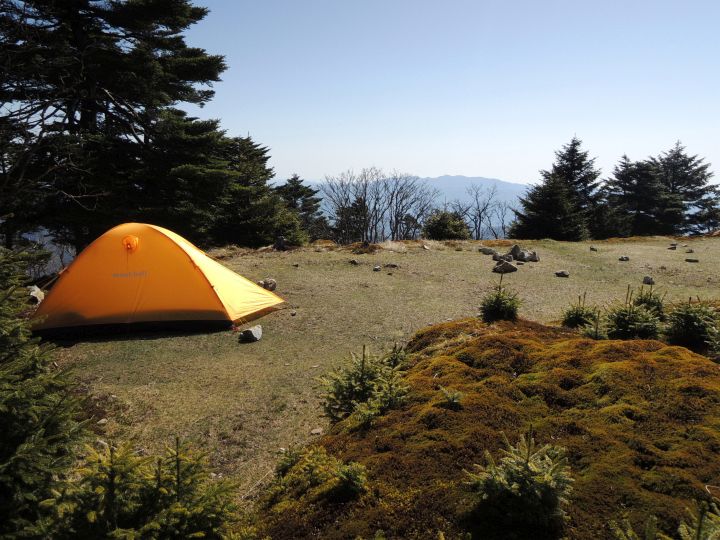小屋のすぐ近くに国見八方睨と呼ばれる展望地があり、テント場となっていた。