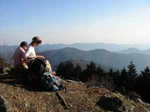 眺めの良い尾根の分岐で一休み。