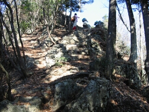 山頂手前の大きな岩稜を巻くように登っていく。こういうのが不思議と楽しい。