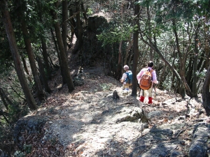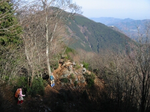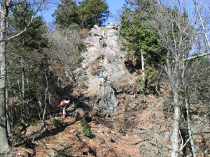 小持山まで変化のある尾根歩きが楽しめる。途中に太った人では通れないような岩場もある。
