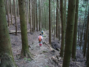 沢筋から檜の植林をジクザクに上り、妻坂峠に到着。
