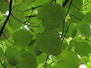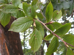 ハクウンボク(白雲木)。葉の先半分に不規則な鋸歯がある。大きな葉の下に小さな葉が2枚つくことが多い。