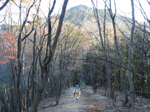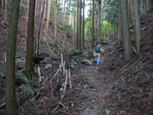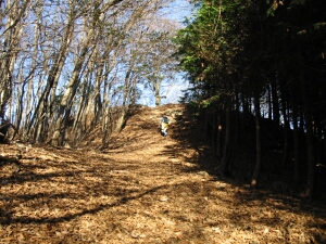 檜の植林と自然林にはさまれた山道をさらに上る。