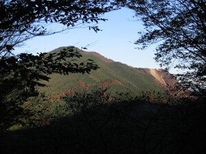武蔵国の名将・畠山重忠も通ったと云われる妻坂峠の樹間から、武甲山が見えた。