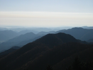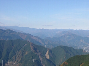 山頂は南西の展望がよく、大平山、雲取山、西谷山などの山々を見渡すことができる。