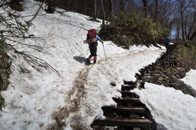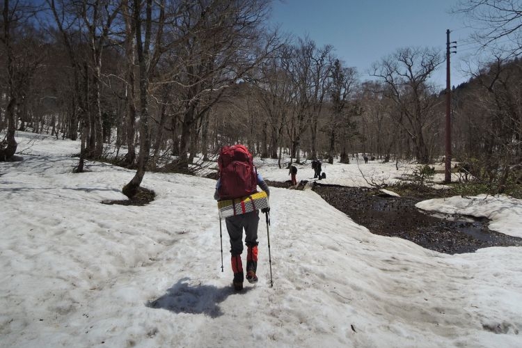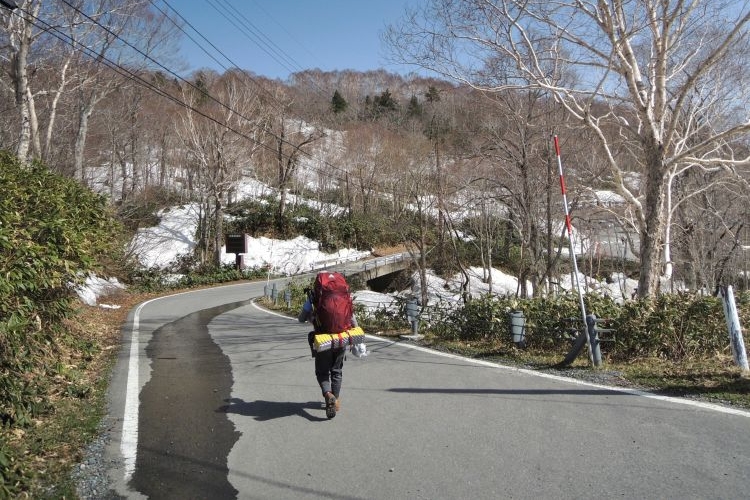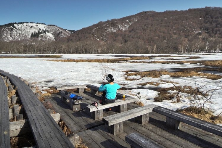 鳩待峠までは残雪が緩んで歩きづらい場所もあったが、疲れはそれほど感じなかった。復路も乗り合いタクシーを利用して戸倉へ移動。待ち時間は短かった。2日間天気に恵まれて、大満足の山行となった。また尾瀬でテント泊をしたいと思う。