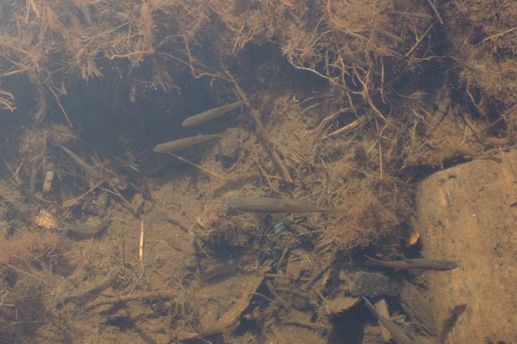 ドジョウかと思ったが、地元では「ボヤ」と呼ばれる「アブラハヤ」という魚らしい。たくさん群れていた。