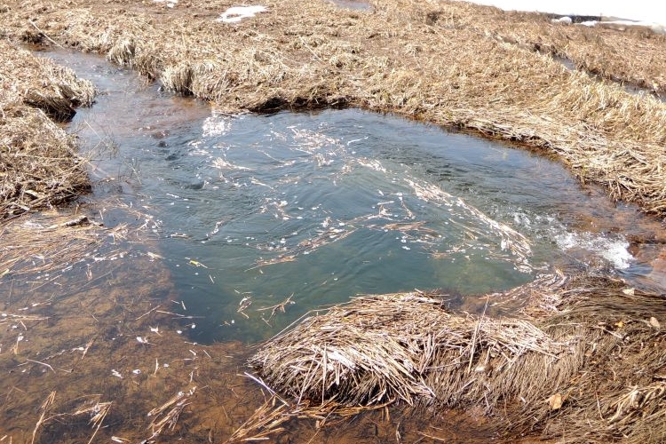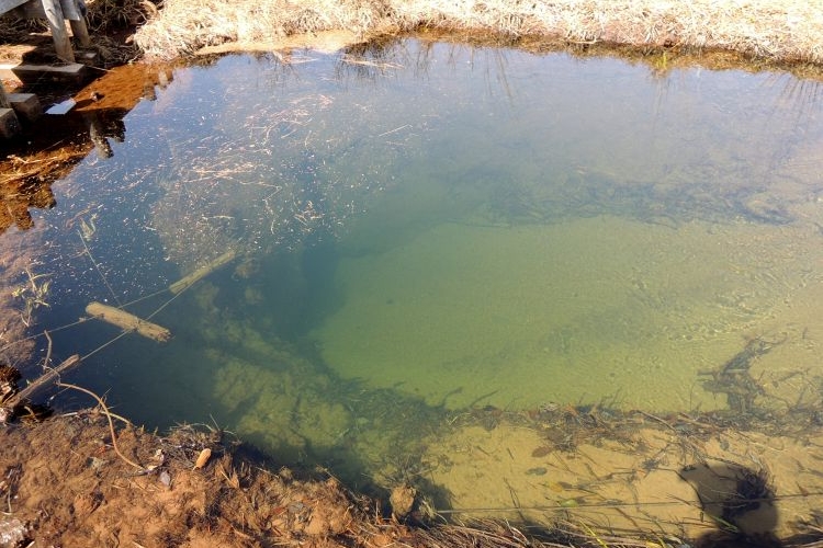 せっかくなので竜宮現象出口(湧出点)にも寄った。湧き水のように地下からゆっくりと水が流れ出ている。