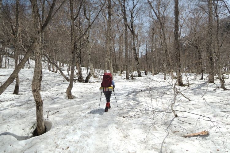 復路は若干上り基調となる。足元の雪も緩んでいるので、ゆっくり慎重に歩いた。