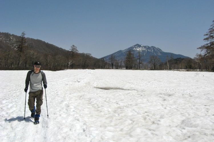 6:40 テントの荷物をある程度整理してからチェーン・スパイクを履いて尾瀬ヶ原の散策へ出かけた。