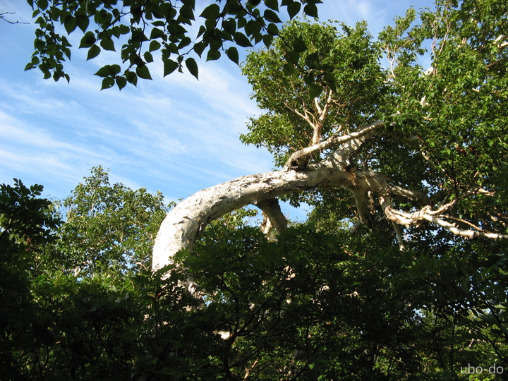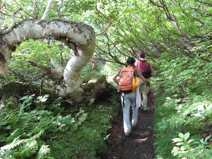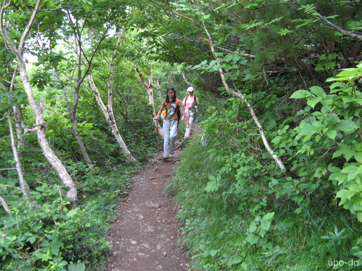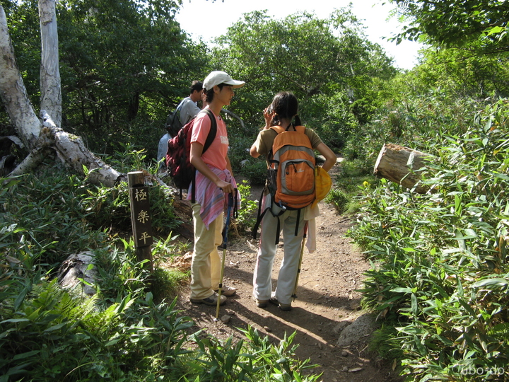 弥吉水を過ぎると「極楽平」と呼ばれるダケカンバの台地に出る。