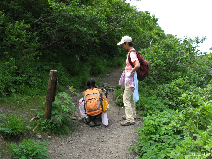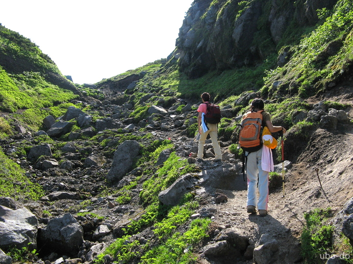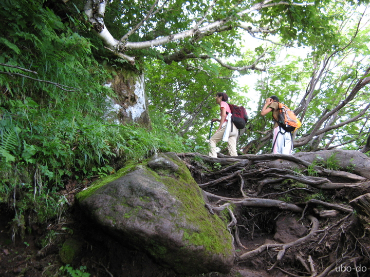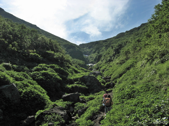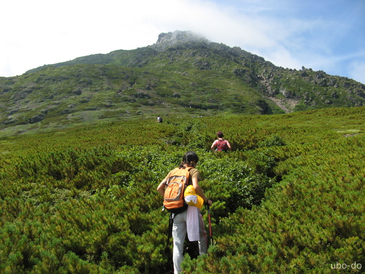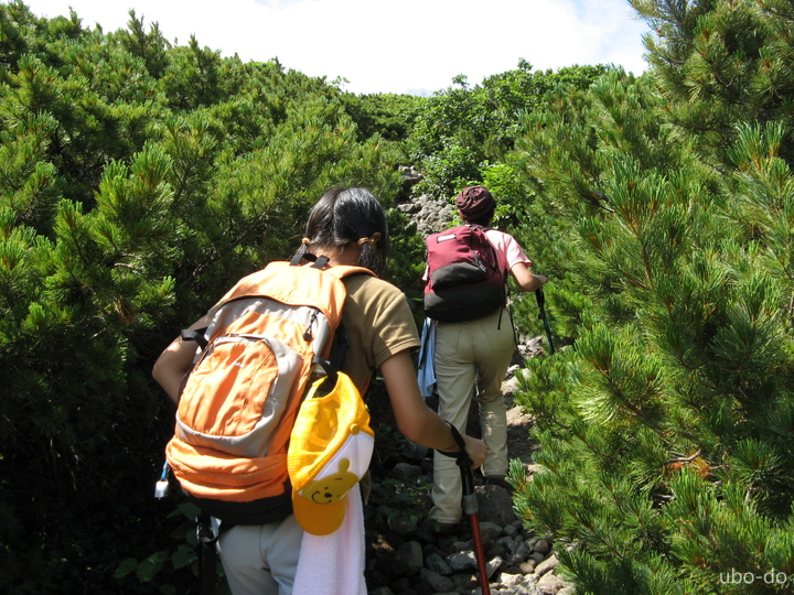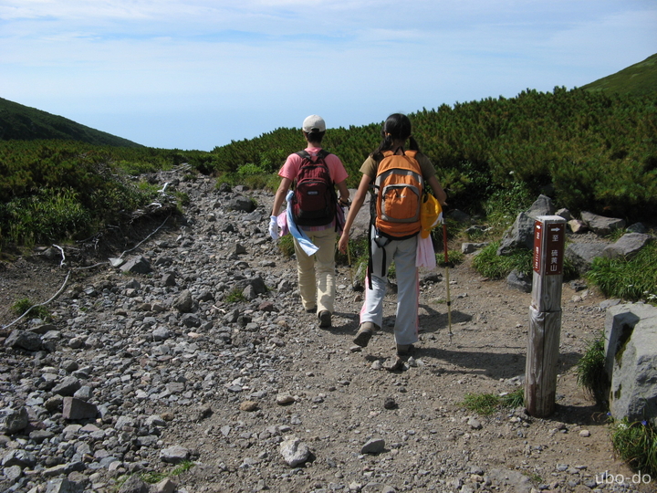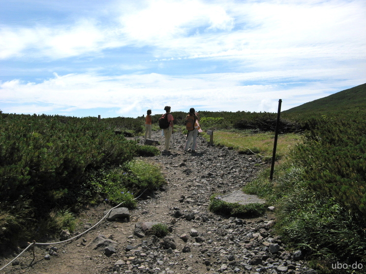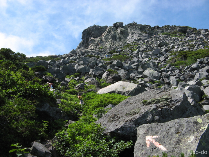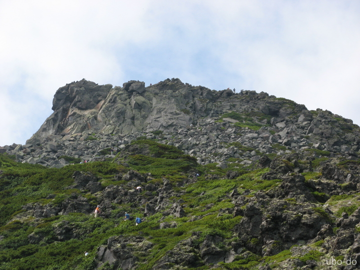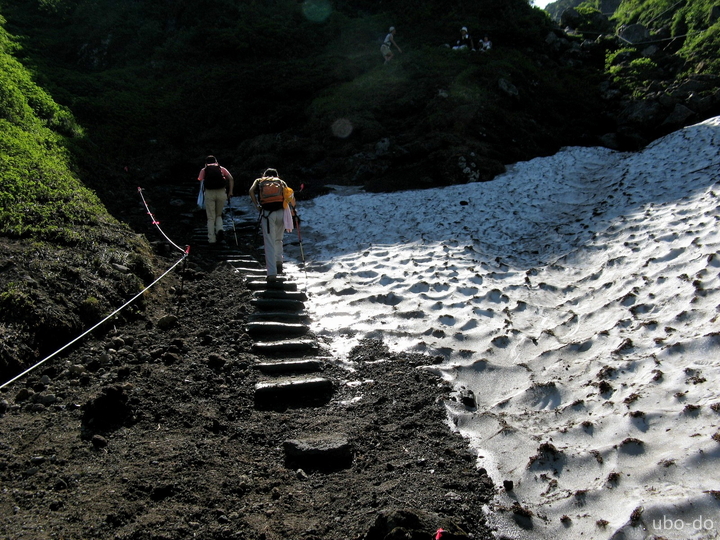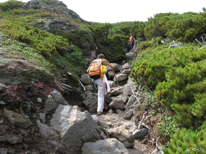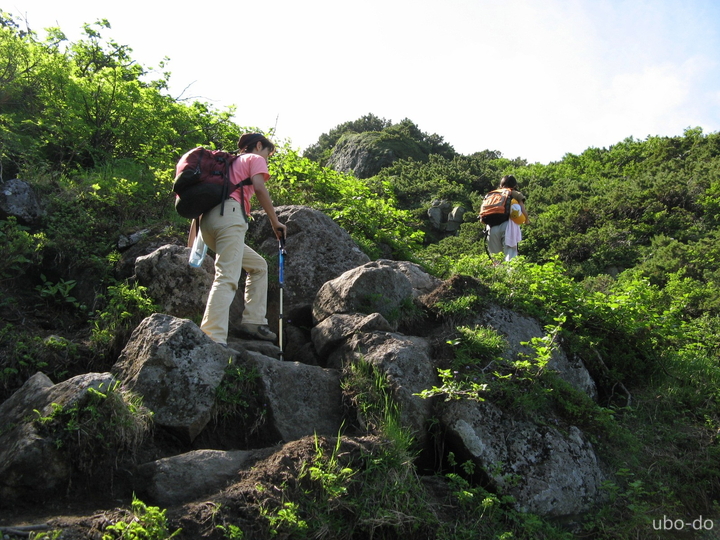 二つあった雪渓を越えると山道は岩混じりとなり、斜度が増してきた。