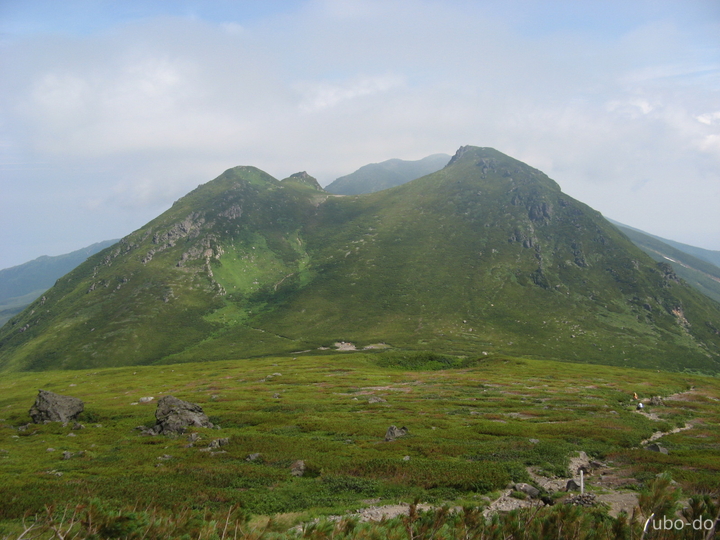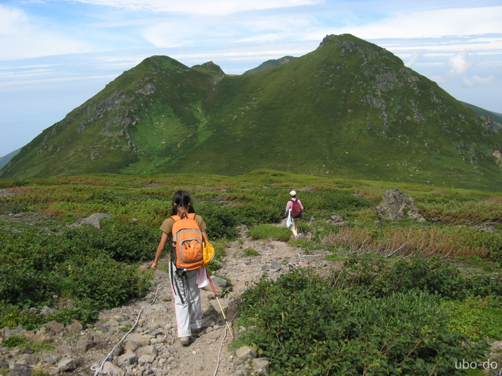 登山口から山頂までの標高差が1,400m以上あり、普段は標高差400mから700m位の山を登っている我が家にとっては大きなチャレンジとなった。当初は旅行日程に組み込むのは難しいと判断していたが、前日 知床の観光地を回ってその山容を眺めているうちに、どうしても登りたくなった。