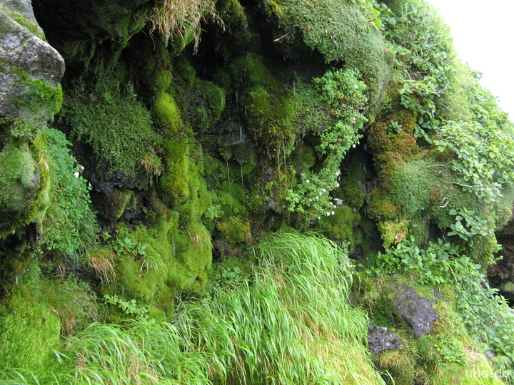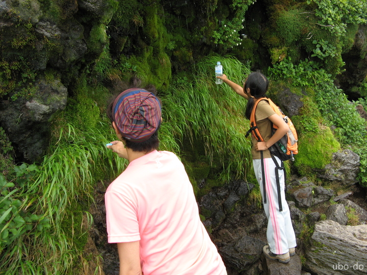苔むした岩壁からの湧水が、糸状に幾筋も流れ落ちていた。