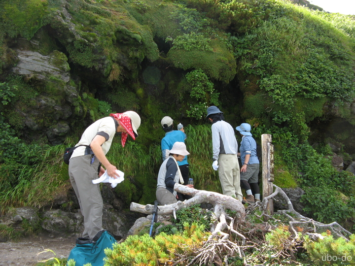 ハイマツ帯から岩場に変わる付近に岩清水がある。