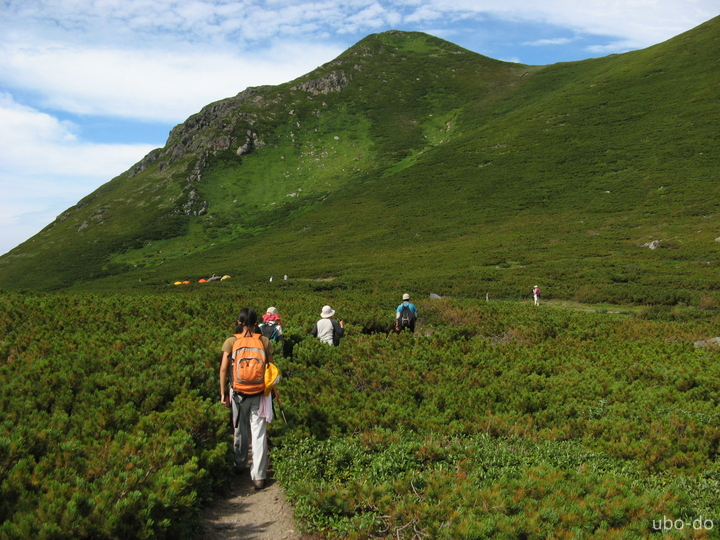 羅臼平には木下ケルンがあり、テントを張っている人もいた。