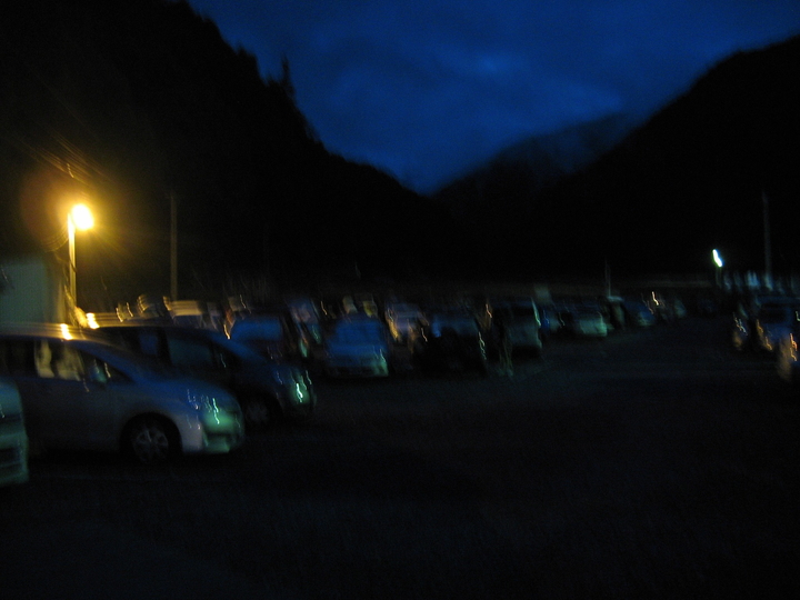 前夜21時40分に自宅を出て、やっと到着。すでに車は一杯。車内で仮眠をとった。