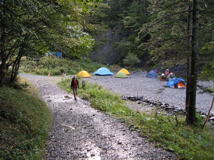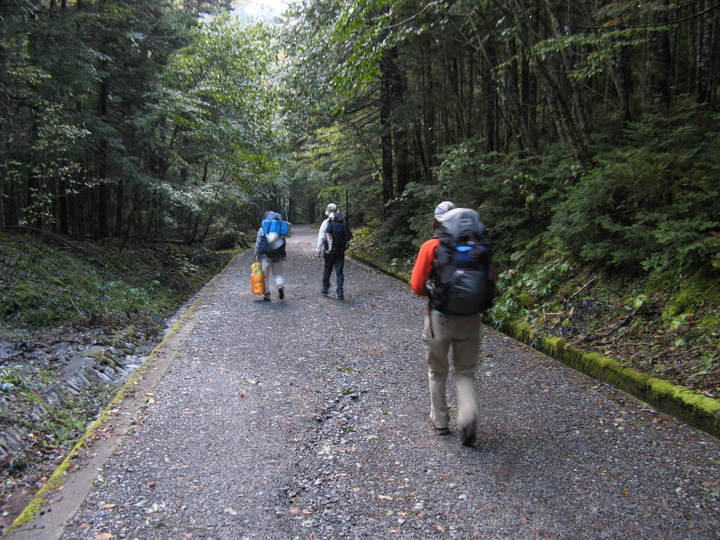 林道に出たら、テント場までは5分ほど。早くテントで休みたかった。