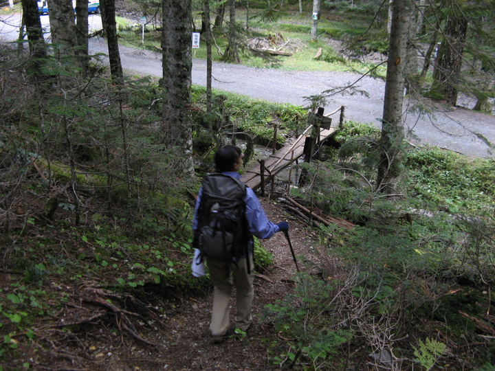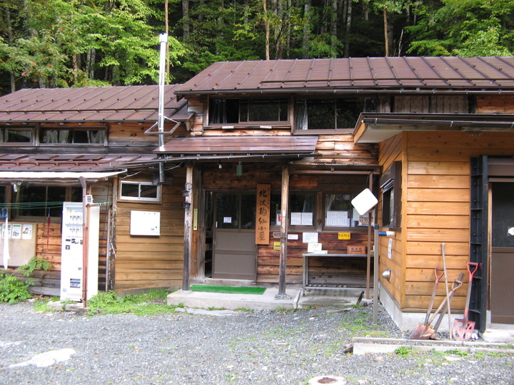 バスを降りて北沢駒仙小屋へ。徒歩10分ほどだが、ずっしりとリュックが重かった。