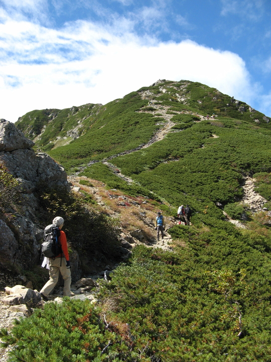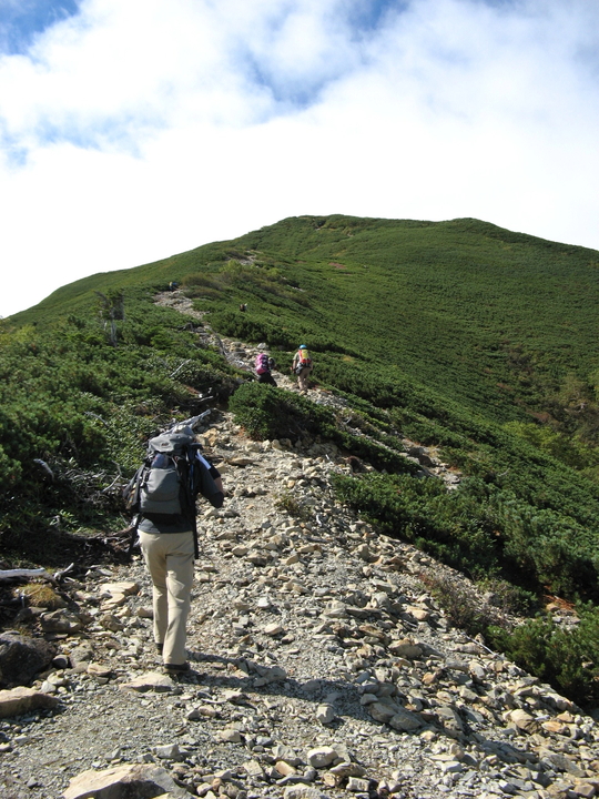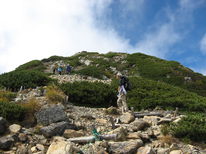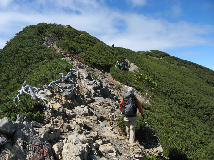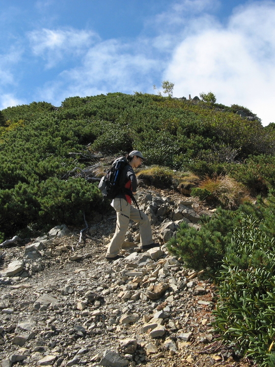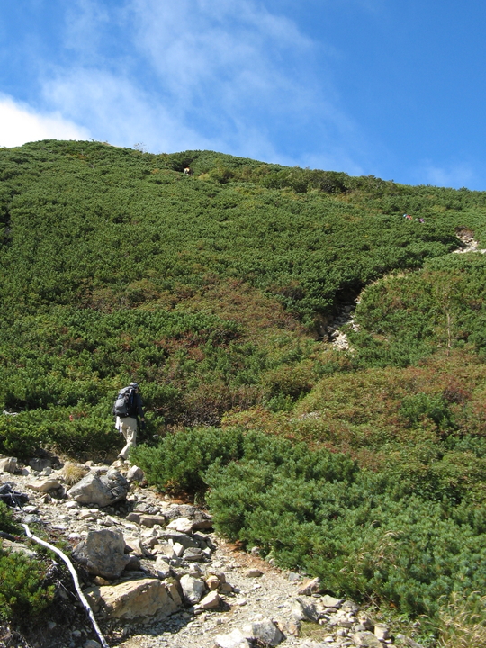 背丈ほどのハイマツ帯もあったが、道が広くとられているので歩きやすかった。