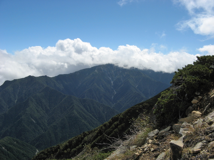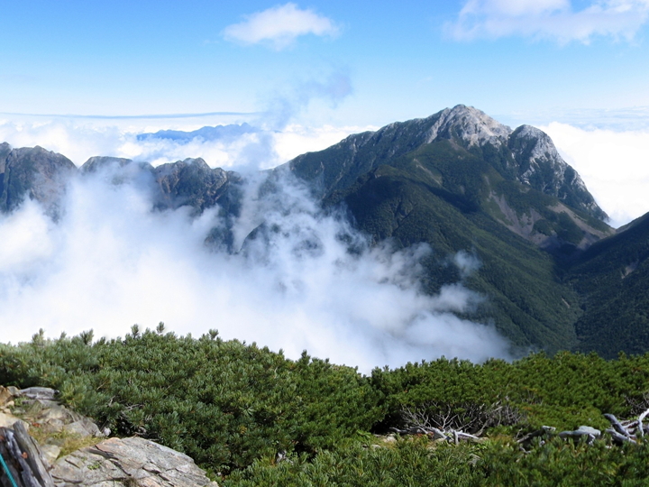雲は甲斐駒ケ岳を飲み込んで、小仙丈ケ岳にも迫っていた。