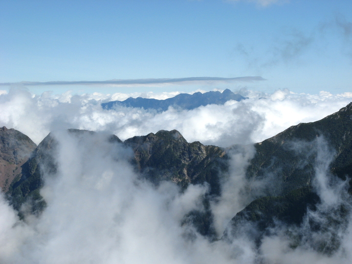 鳳凰三山のオベリスクが、ときおり雲の中から現れていた。