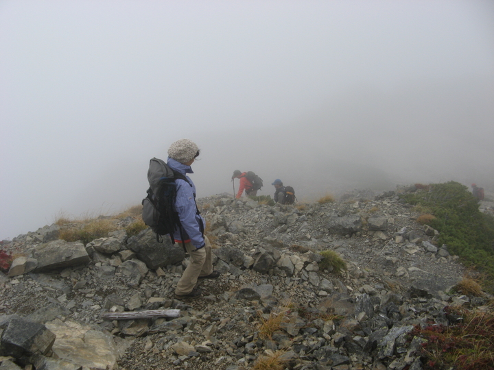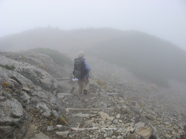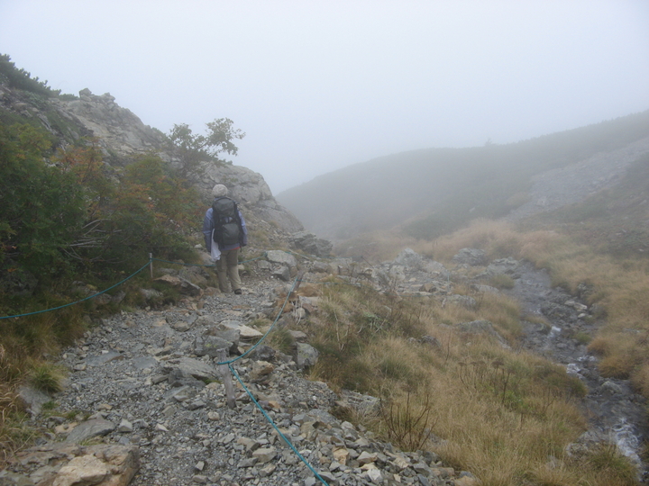 小仙丈尾根もガスに覆われて、展望がみるみる限られていった。