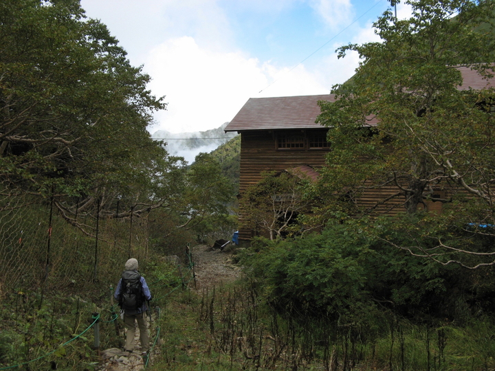 分岐から10分ほど歩くと藪沢小屋。ひっそりとして人の気配はなかった。