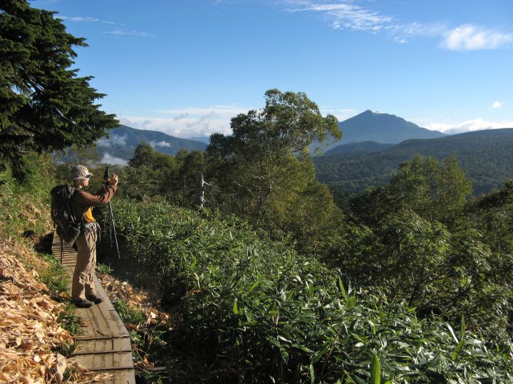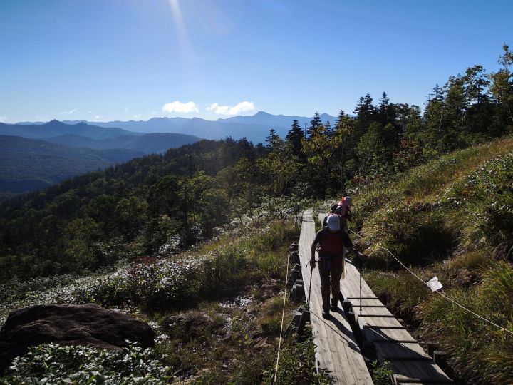 しばらくすると木道となり、30分ほどで眺めのよい場所に出た。素晴らしい眺めにテンションが上がった。