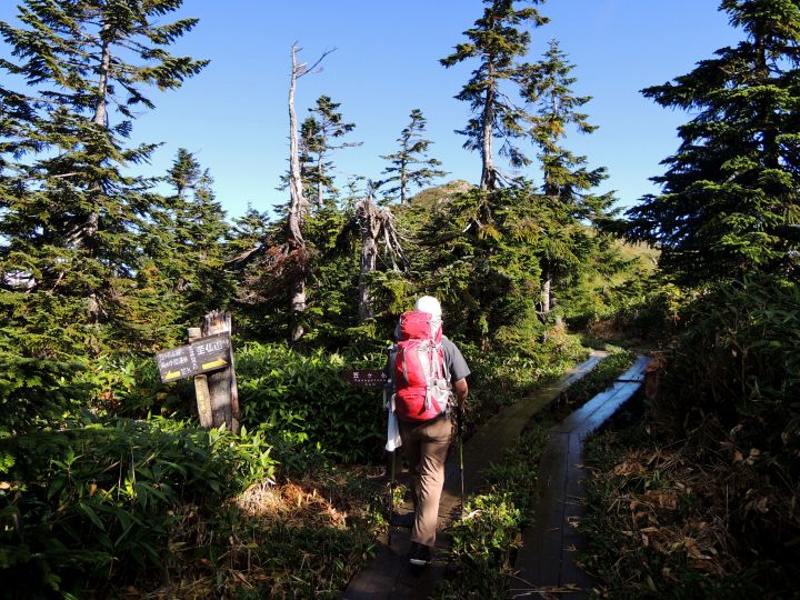 8:00 オヤマ沢田代の分岐を通過。笠ヶ岳へのルートはここを左に入る。
