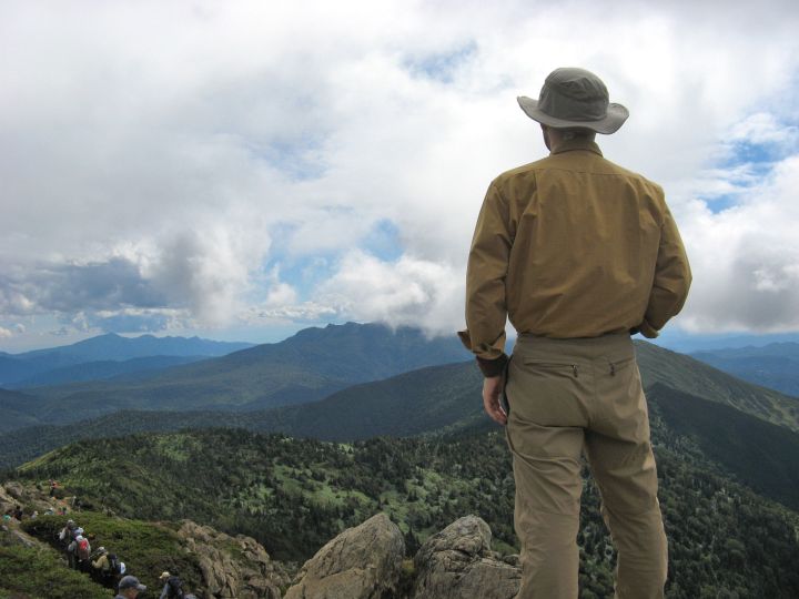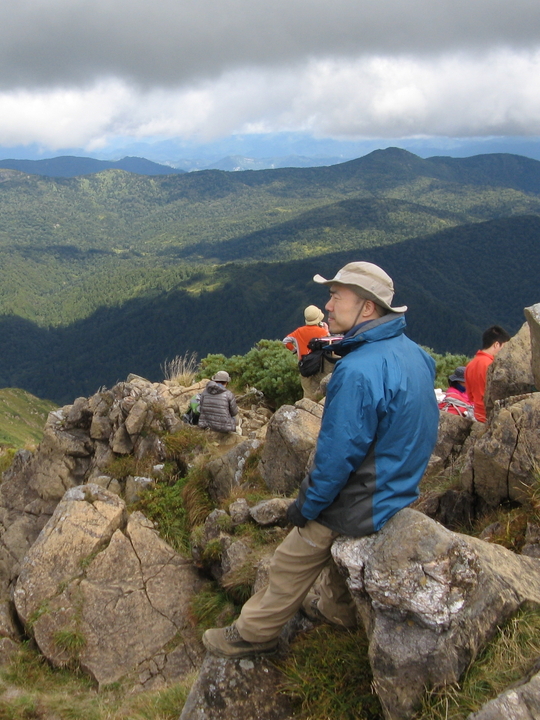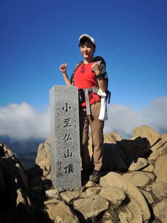 山頂標の横に陣取ってアマチュア無線をしている中年男性がいて、フレームに入るので難儀した。