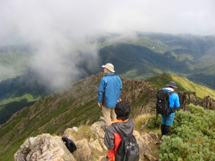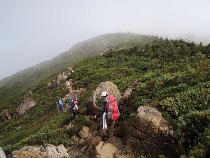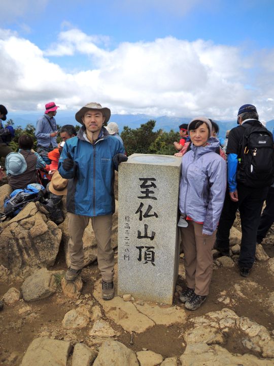 9:15 至仏山に到着。山頂はすでに雲の中で、どの方角も真っ白だった。