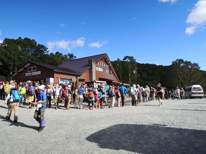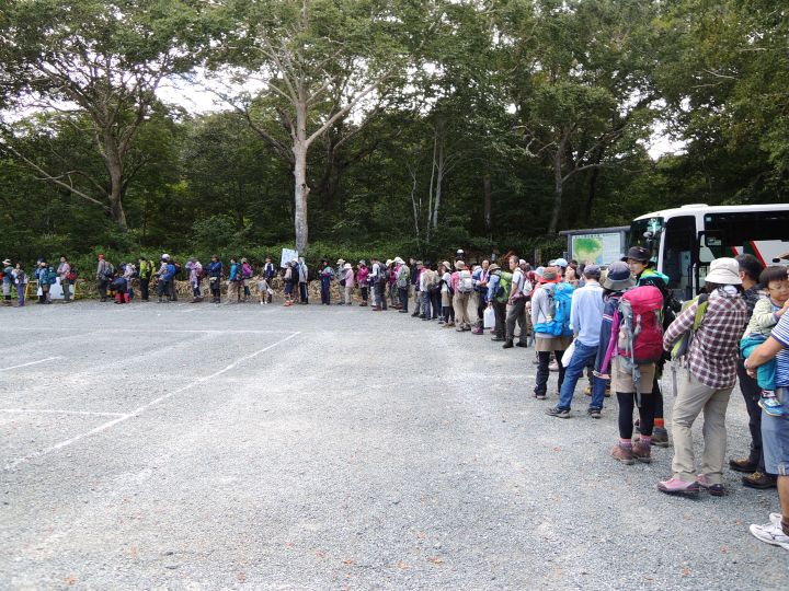 15:15 鳩待峠に着いて長蛇の列に驚く。すぐチケットを求める列には嫁が並び、私はバスを待つ列に並んだ。