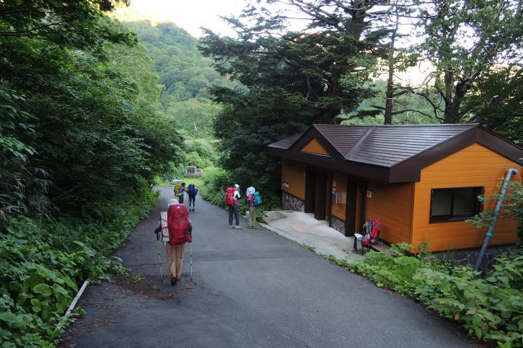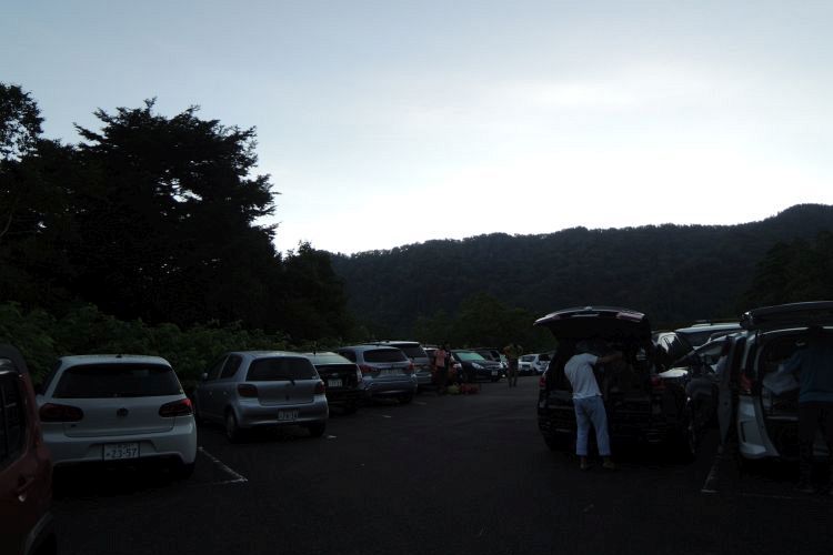 深夜の高速を飛ばして松代PAで休憩。狭い林道を20km走って、日付の変わった 0:50 蓮華温泉の駐車場に到着。驚いたことにすでに駐車場は満車。かろうじて駐車場内に停めるスペースを見つけたが、あとの車は路駐するしかない状態だった。そのまま車中で就寝。少し暑かったが、窓を開けると涼しくなった。しばらく寝付けなかったが2時間ほど仮眠をとれた。未明に目が覚めると、身支度を整える登山者や出入りする車で周囲は騒々しかった。