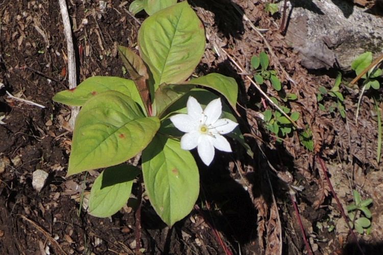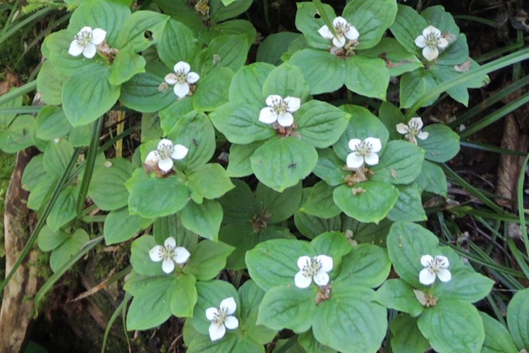ミズキ科のゴゼンタチバナ。日当たりの悪い山道脇に群生しているのをよく見かけた。