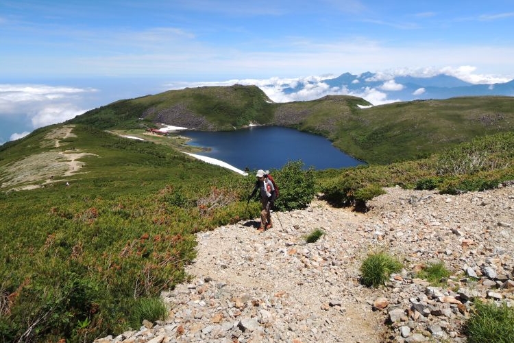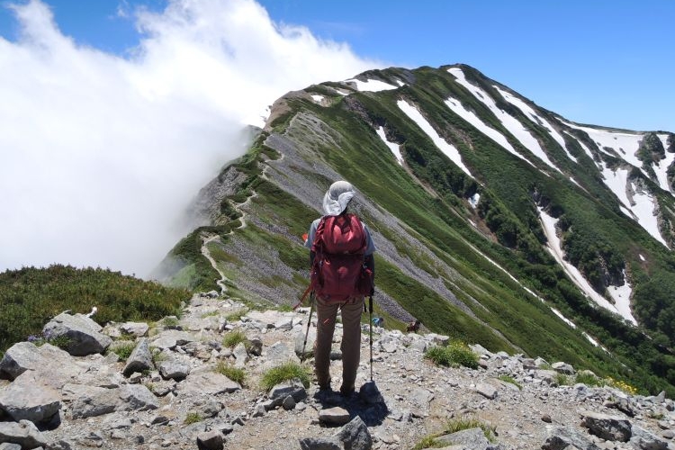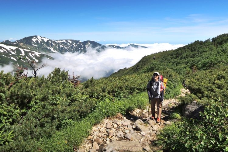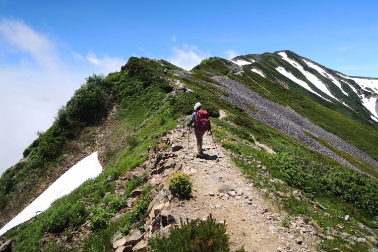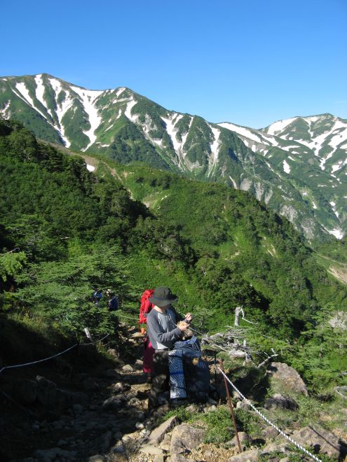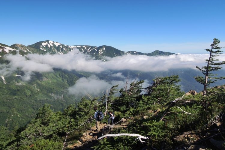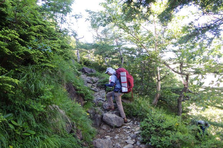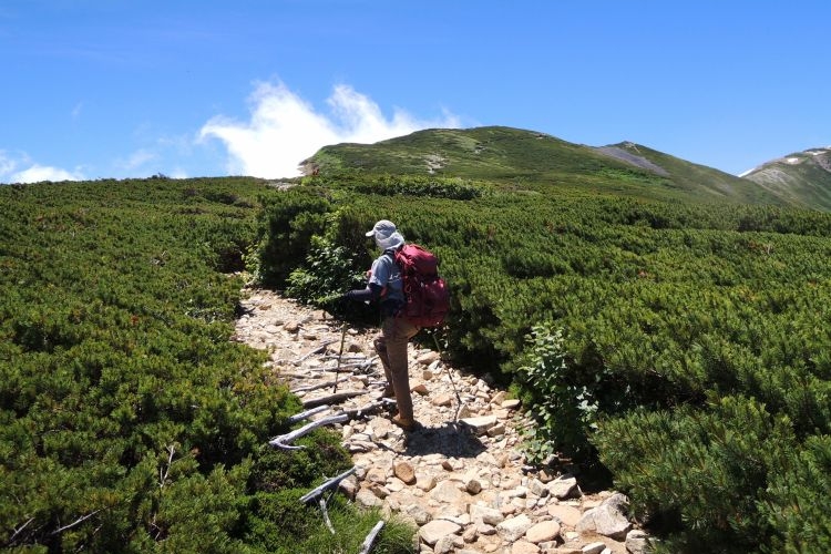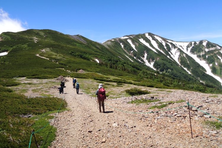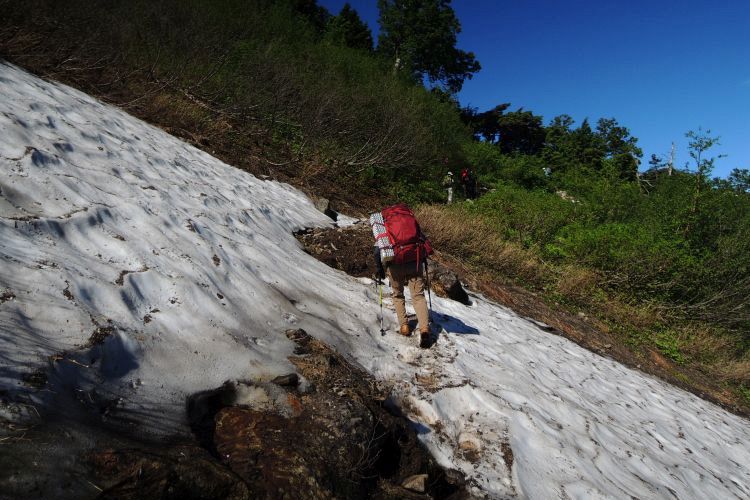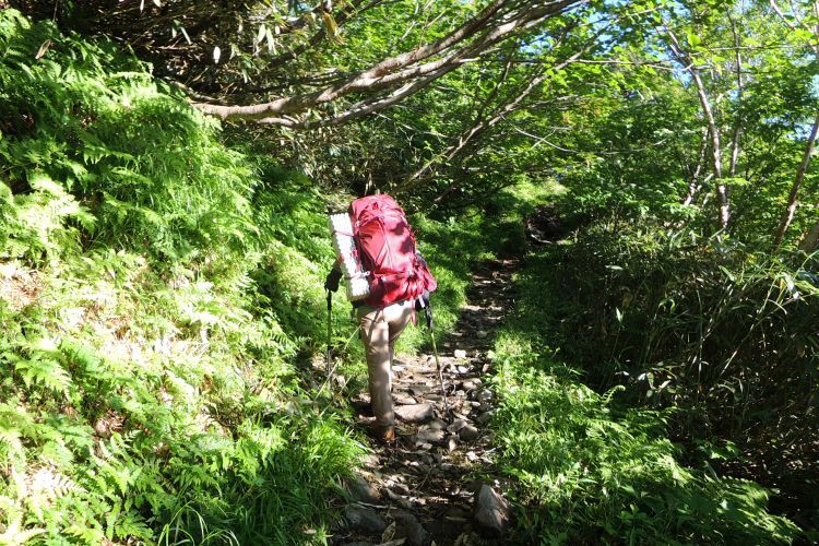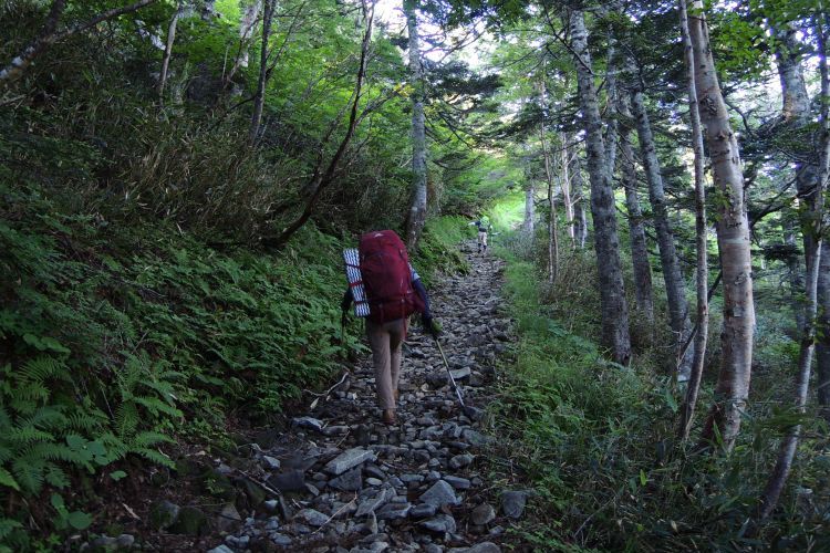 秘湯と呼ぶにふさわしい蓮華温泉の野天風呂へと続く道を分けて進む。ザックは重いが、朝からの快晴に心が弾んだ。