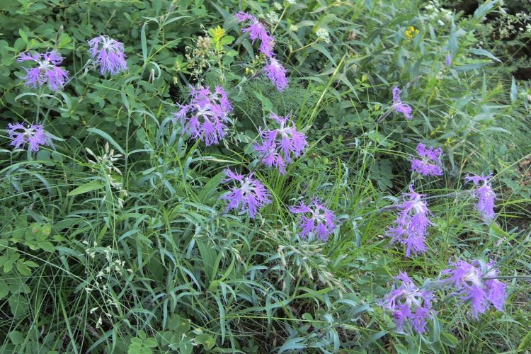 タカネナデシコの群生。天狗の庭は多様な高山植物に囲まれており、花園のようだった。