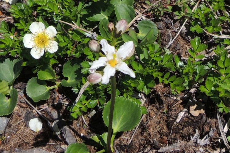 チングルマに混じって咲いていたミツガシワ科のイワイチョウ。
