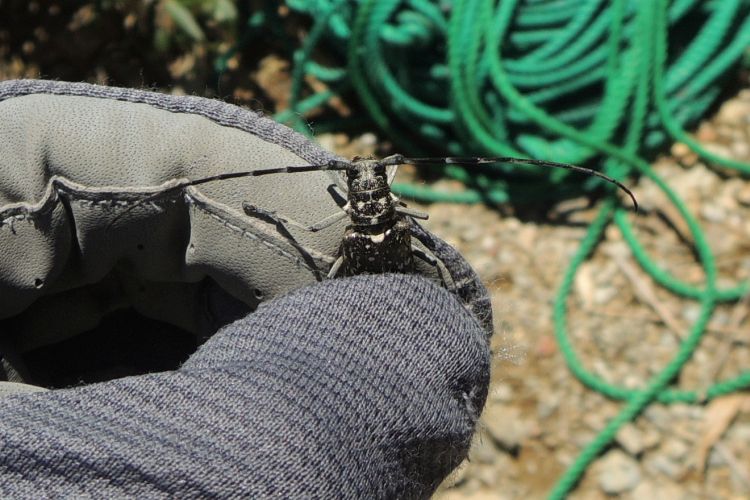 嫁のズボンにくっついてきたカミキリムシを捕獲。