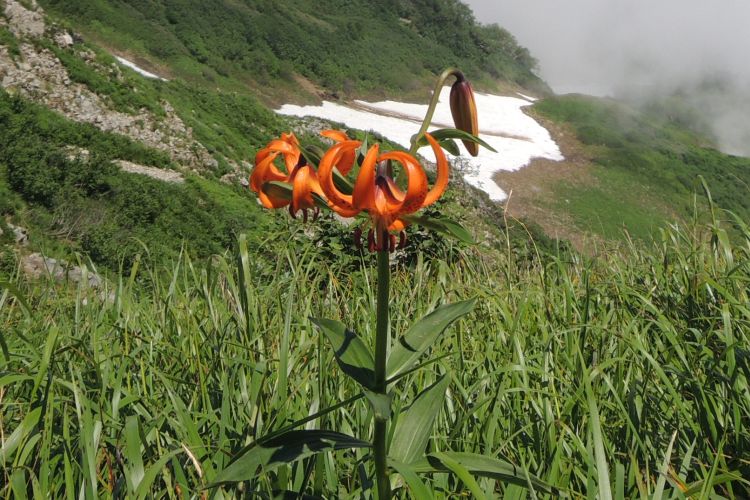 山頂付近に点々と咲いていたクルマユリ。