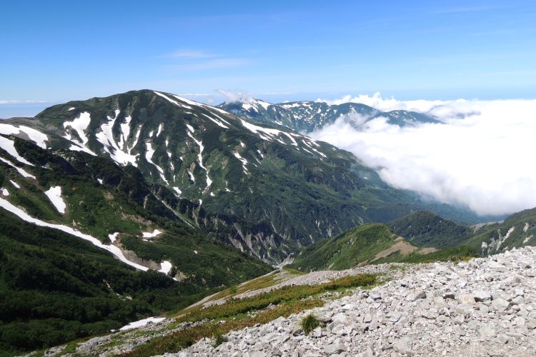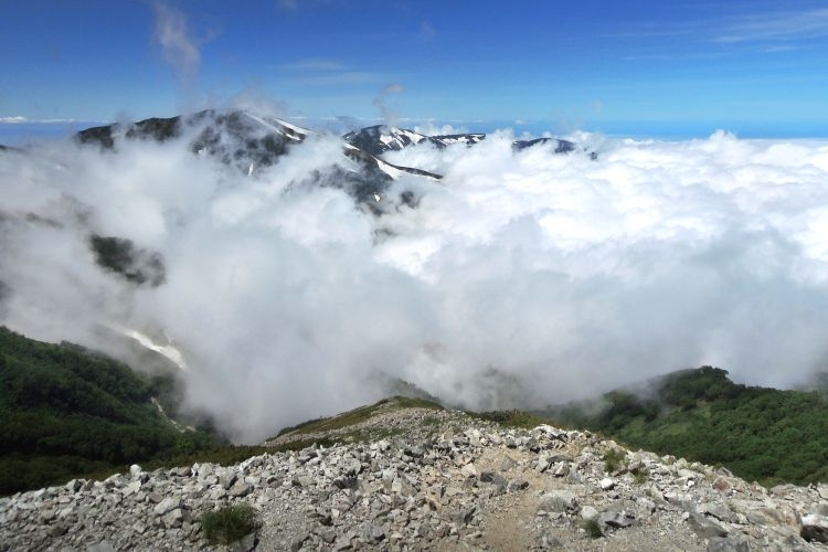しばらくすると雲は消えて、再び雪倉岳と朝日岳がよく見えるようになった。