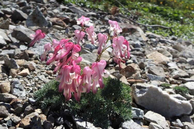 ガレ場に群生していた高山植物の女王、コマクサ。