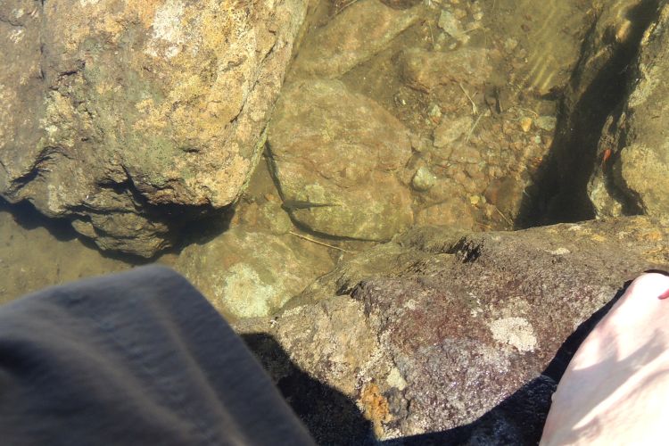 池の水で足を冷やしていると、小さな生き物が水底で動いていることに気が付いた。