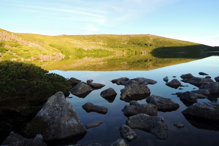西日が当たってテント内が暑いので、豚の角煮とレトルトピラフの夕食後、再び山荘裏の池畔へ。乗鞍岳を映し出す夕暮れ時の大池を眺めながら、いまここにいるという静かな喜びを感じた。この後、テントに戻って19時には寝てしまった。