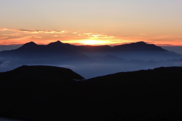何度経験しても日の出の光景は感慨深い。雷鳥坂で多くの登山者が日の出を眺めていた。