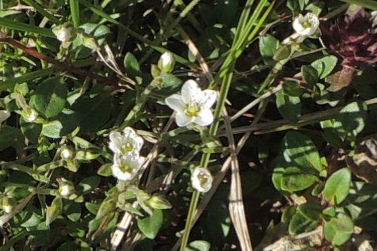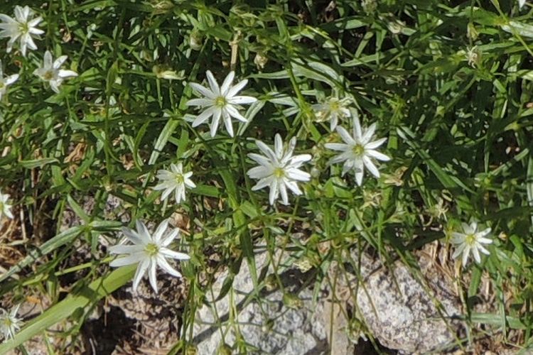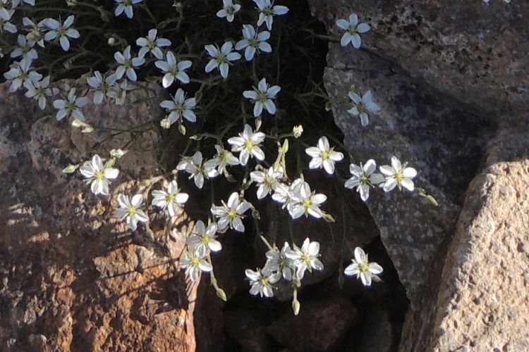 ナデシコ科のイワツメクサ。5弁花だが中央が深く裂けて、10枚あるように見える。