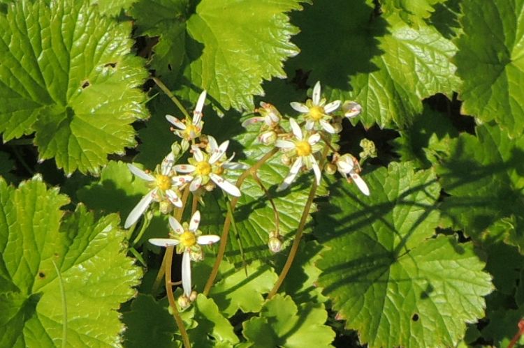 群生するミヤマダイコンソウの中に、ユキノシタ科のミヤマダイモンジソウが咲いていた。